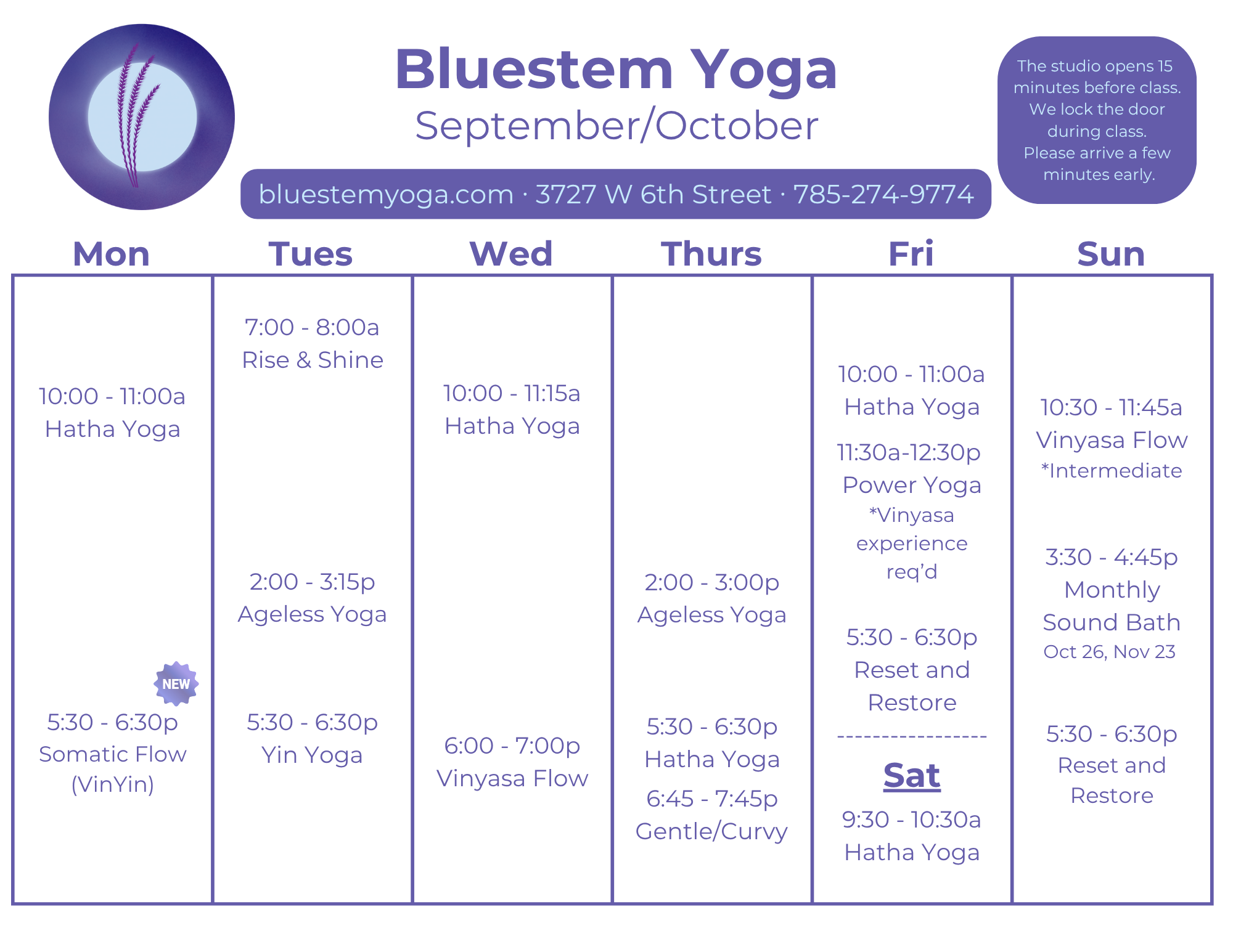 There are occasional changes. Please check the real-time schedule and pre-register on the Book a Class page.